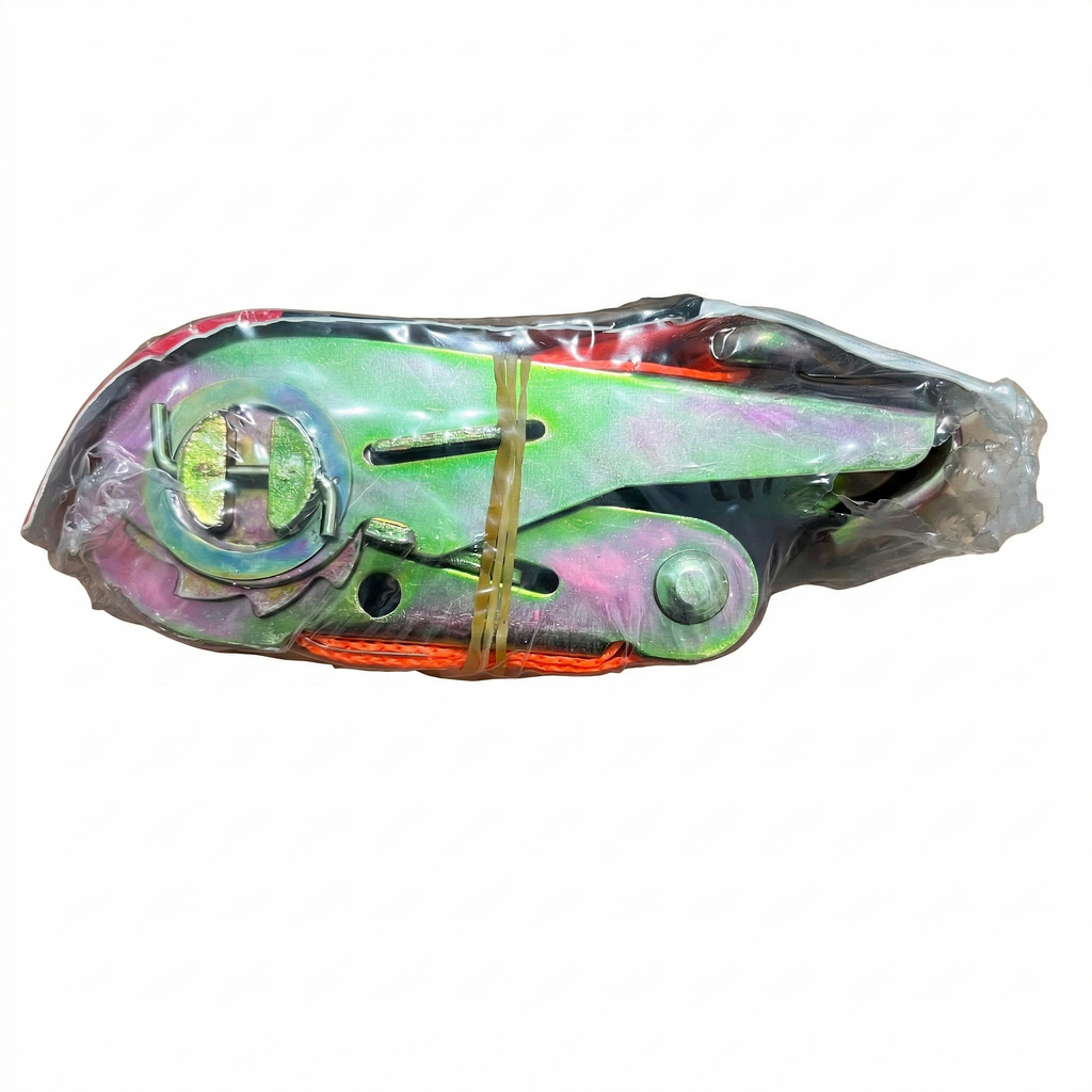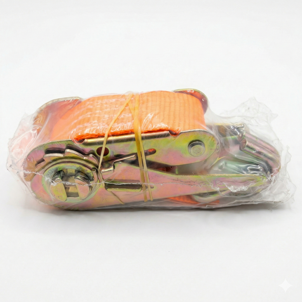 Fabricada com materiais de nível industrial, a catraca possui um mecanismo de travamento preciso que permite tensionar a cinta com facilidade e segurança. A cinta, com largura de 25mm na cor laranja vibrante, é confeccionada em fibra sintética de alta densidade, garantindo uma capacidade de carga de até 800kg (0,8 toneladas). O sistema acompanha um gancho metálico tipo "J" reforçado, ideal para ancoragem em diversos pontos de fixação de caminhonetes, caminhões e carretinhas.