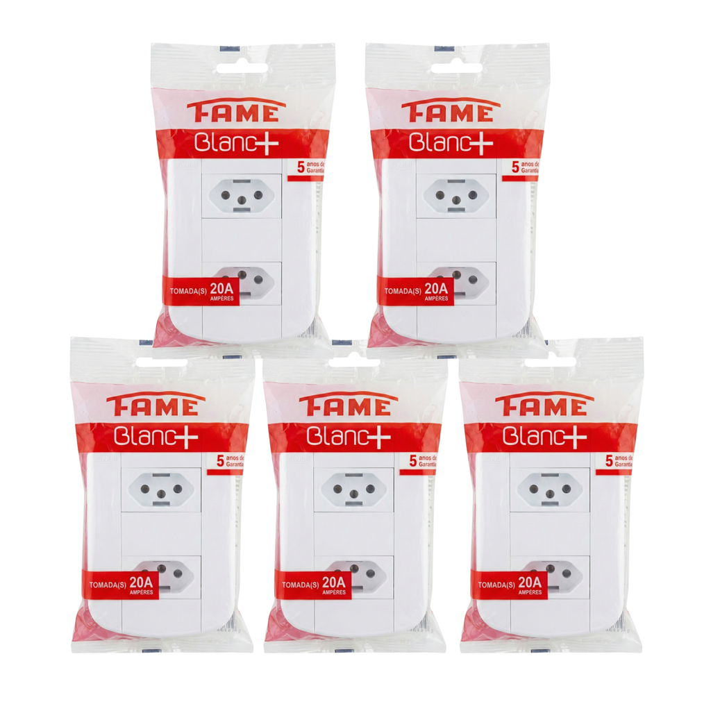 Conjunto com 2 Tomadas FAME Blanc+ 20A ideal para equipamentos de alta potência.
