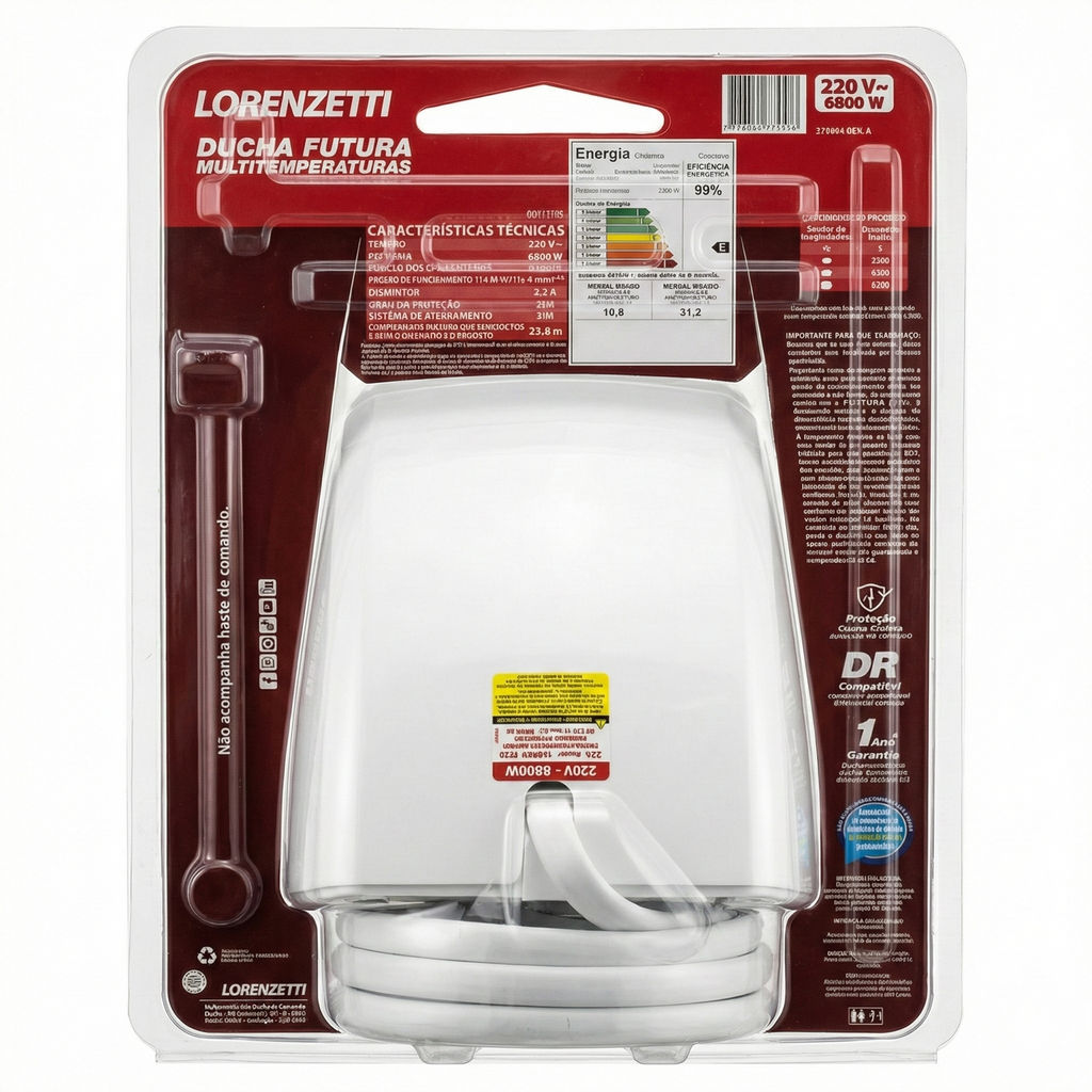 A Ducha Futura Eletrônica Lorenzetti é a união perfeita entre design premiado e tecnologia de ponta. Com um visual inovador que dispensa o uso de canos externos e esconde a fiação, ela oferece um acabamento impecável à sua casa de banho. O seu grande diferencial é o Controle Eletrônico de Temperatura: através de uma haste ao alcance das mãos, você escolhe a temperatura exata do seu banho de forma gradual, sem precisar desligar o chuveiro para mudar a chave.