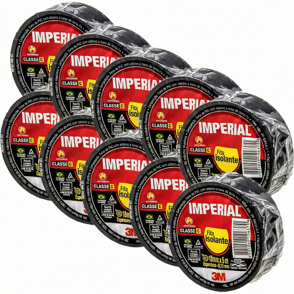 O Kit com 10 Fitas Isolantes 3M Imperial Slim 18mm x 20m é a escolha ideal para eletricistas, profissionais da construção e também para uso doméstico que exige qualidade, segurança e alto rendimento. Produzida pela 3M, referência mundial em tecnologia e materiais elétricos, essa fita oferece excelente isolamento, alta aderência e grande durabilidade.
