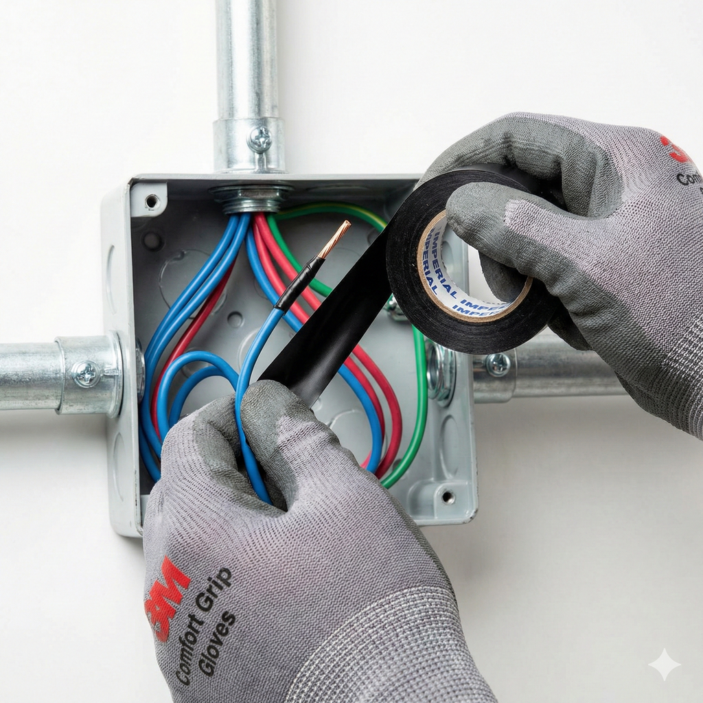 Para garantir um isolamento seguro, aplique a fita com leve tensão e sobreposição de aproximadamente 50% em cada volta. Para maior proteção, recomenda-se aplicar ao menos quatro camadas sobre a emenda ou cabo elétrico.