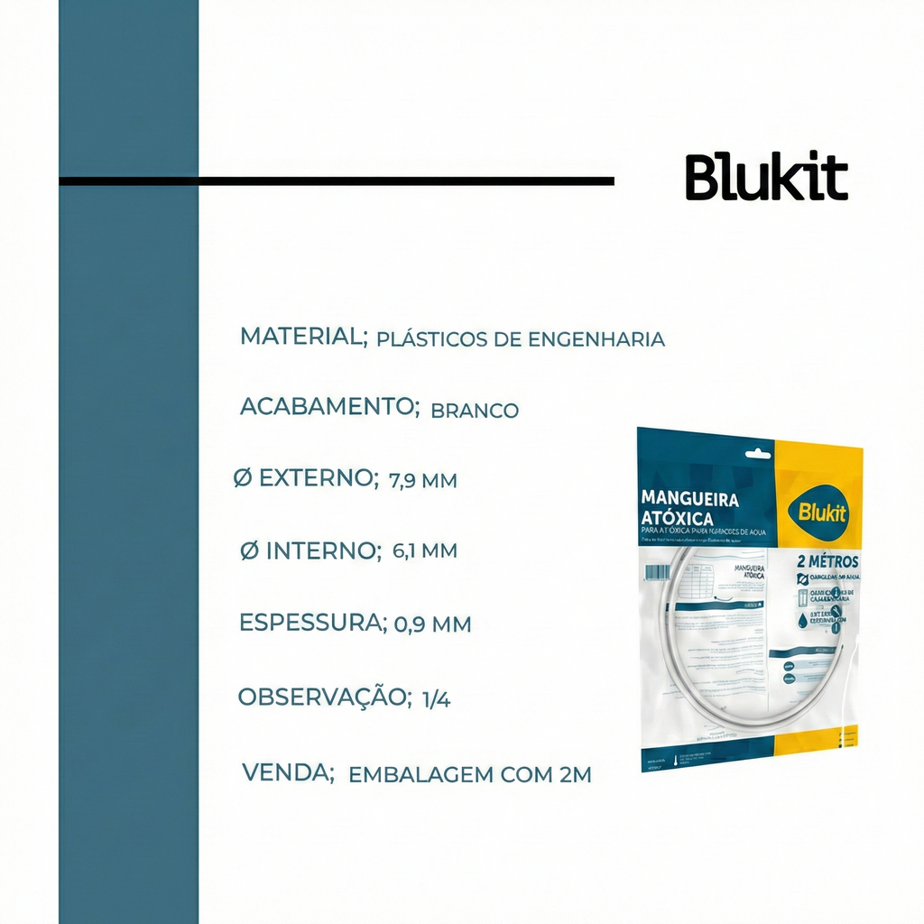 Garanta a pureza da água que sua família consome! A Mangueira Atóxica para Filtros e Purificadores da Blukit é uma peça de configuração essencial para manter seu sistema de filtragem funcionando perfeitamente, com segurança e higiene.