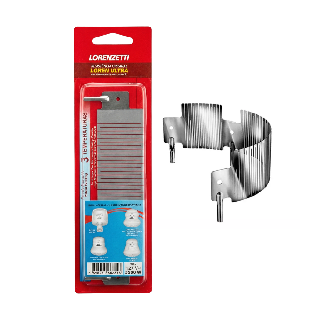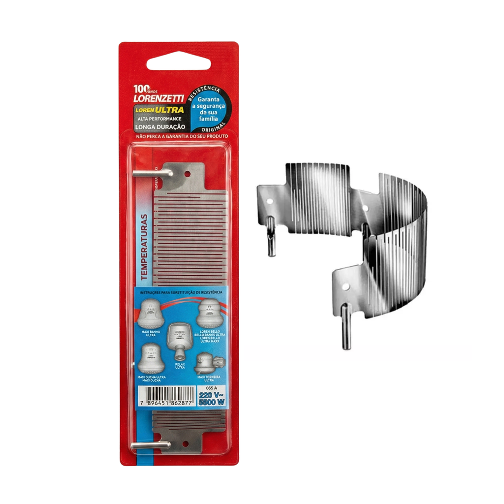 A Resistência Lorenzetti Loren Ultra (Ref. 065) é a peça de reposição original que garante a performance e a durabilidade das duchas da linha Ultra. Diferente das resistências antigas de formato espiral (mola), este modelo possui a exclusiva tecnologia Loren Ultra (Plana), que oferece uma superfície de aquecimento mais eficiente e uma vida útil muito superior.