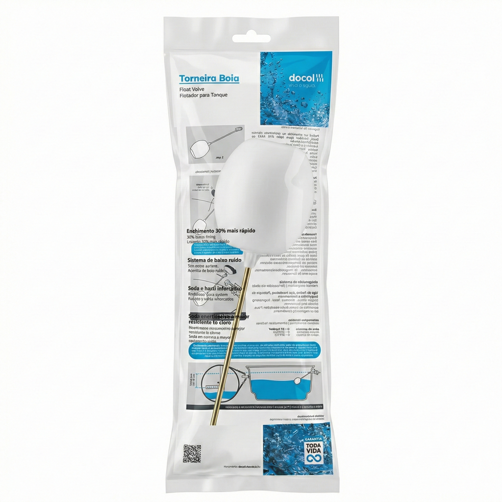 Enquanto bóias comuns perdem a sua eficácia rapidamente devido ao ressecamento da borracha de vedação pelo cloro, a Bóia Docol Reforçada utiliza materiais nobres na sua sede de fecho. Esta resistência superior ao cloro, combinada com a haste reforçada que não sofre torções, insere este produto na categoria de Padrão Superior de Hidráulica, garantindo que as inundações por falha no travamento da água sejam problemas do passado.