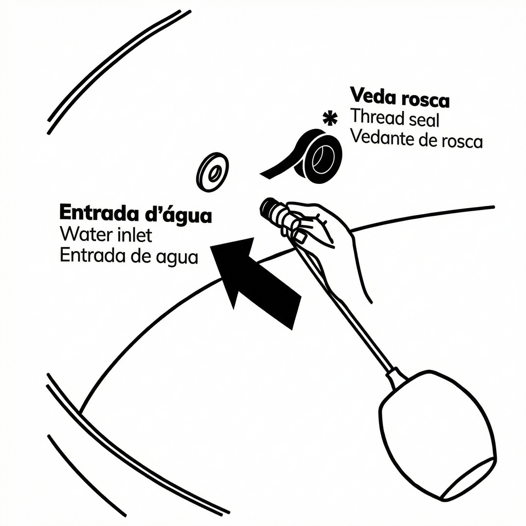 Vedação: Aplique fita veda rosca (teflon) na rosca de entrada (3/4") da torneira de bóia.